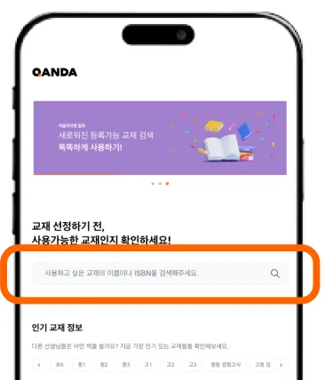 교재는 콴다과외 앱에서 등록할 수 있어요. 교재에 따라 승인되는 시간이 다르니 미리 등록해 주세요.
