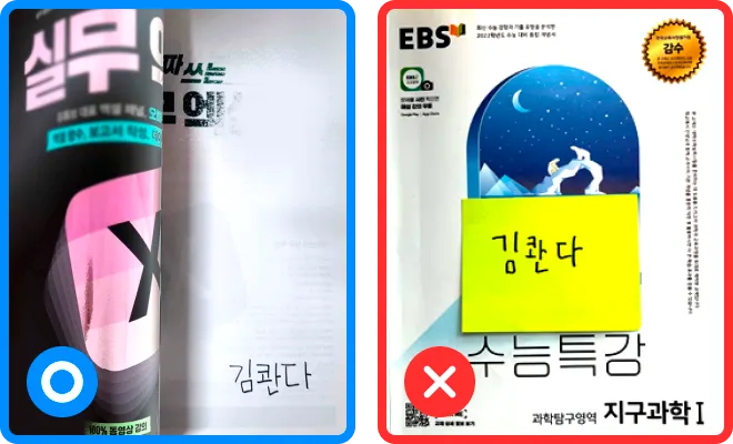 표지에 이름을 적기 어려운 교재라면 참고해 주세요
