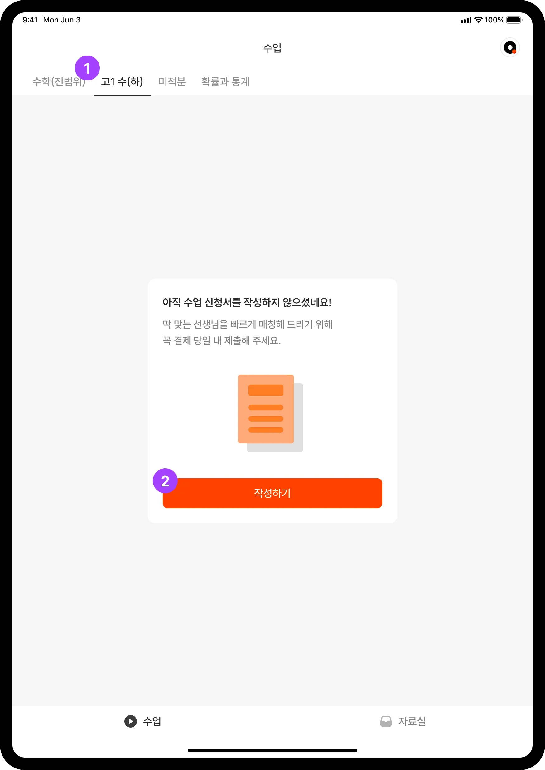 수업 신청서를 제출해야 매칭이 시작돼요