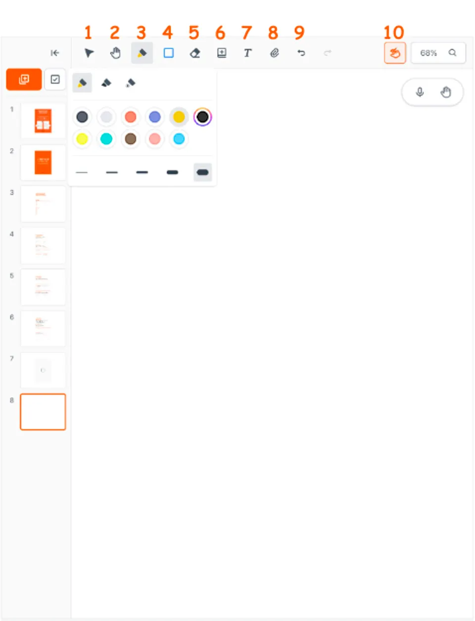 펜의 모양, 색상, 두께를 조절할 수 있어요.