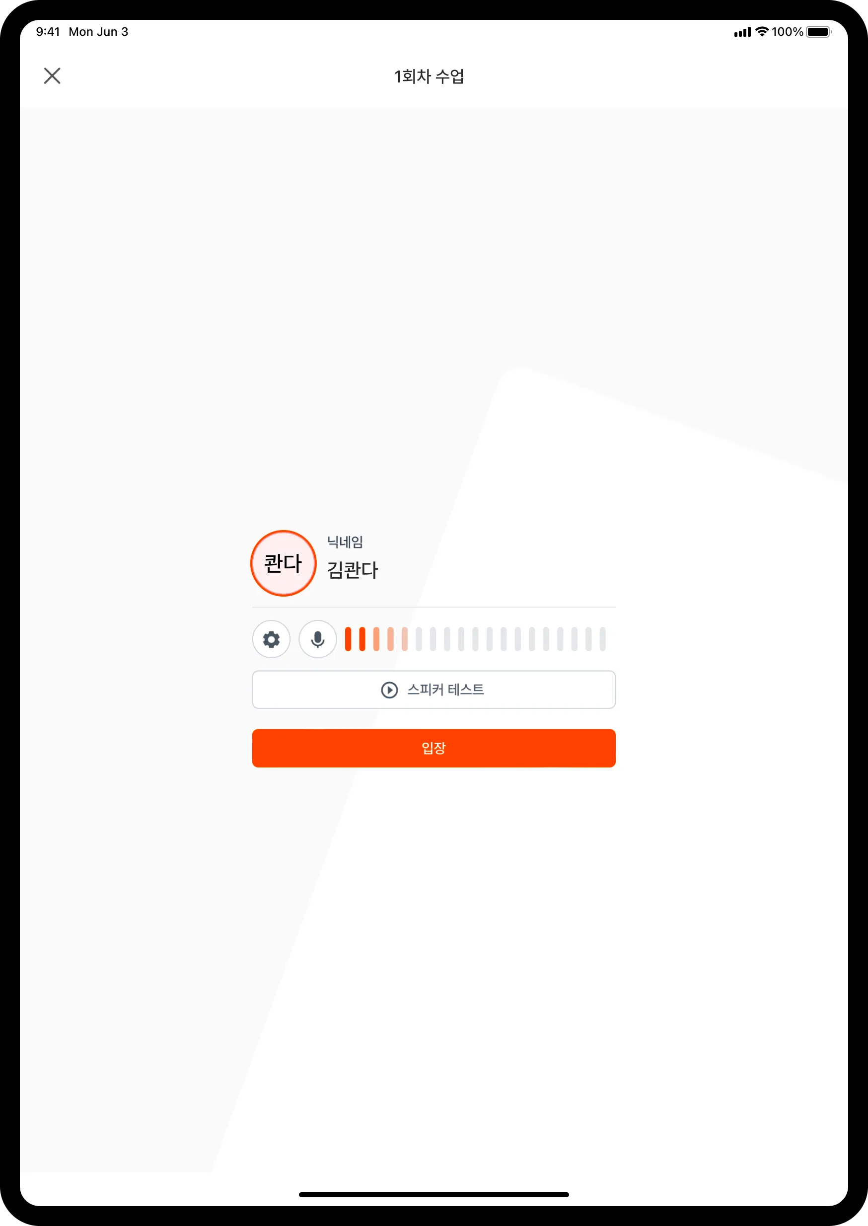 수업 12시간 전부터 입장할 수 있어요. 스피커, 마이크, 펜이 잘 작동하는지 미리 테스트해 보세요!